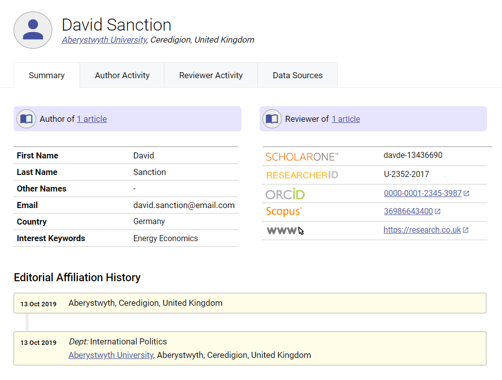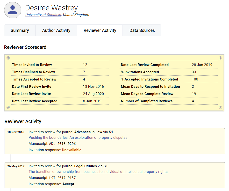 Full details of author and reviewer activity